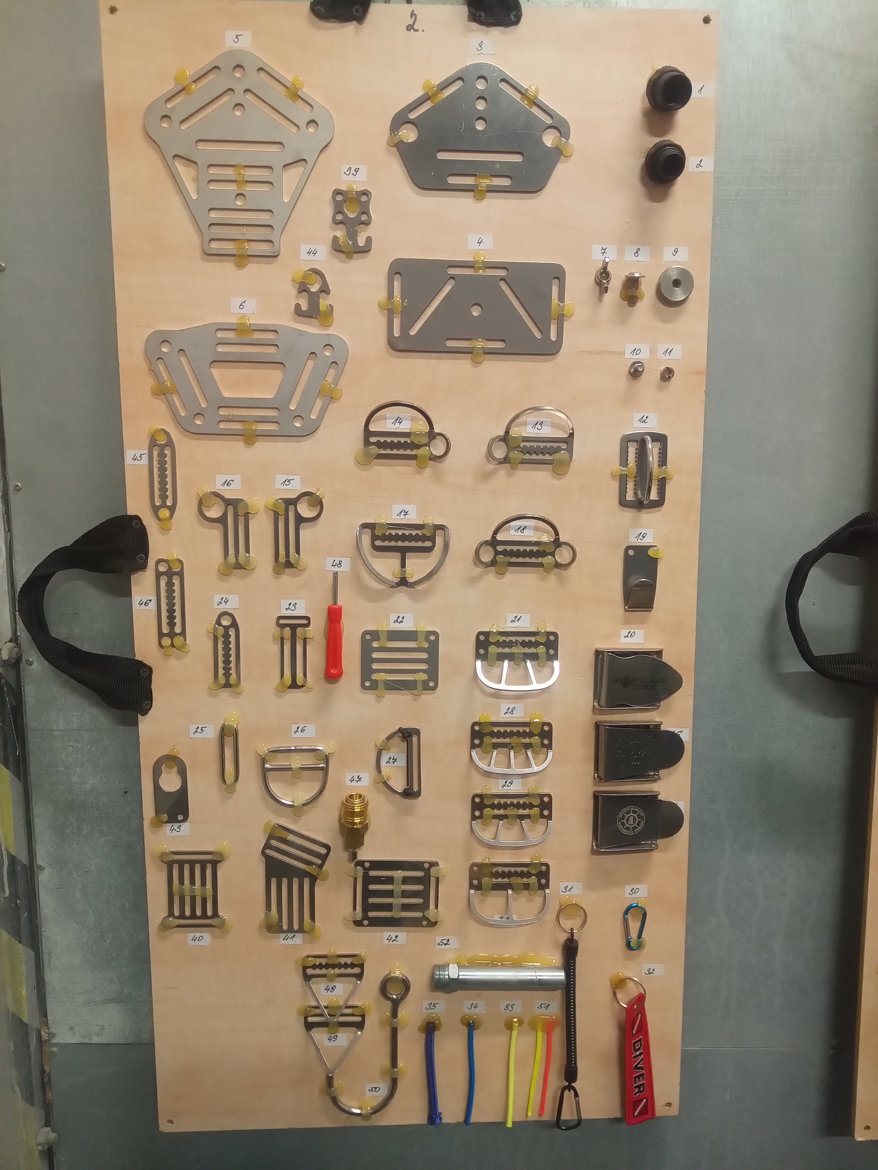 - nerezový sortiment D kroužků, sidemountu a nomountu spon a karabin, veškeré možné D kruhy a úchyty na cokoliv na vercajk