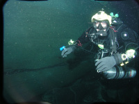Odložil jsem dekompresní stage s nitroxem stranou, šup a už jsem se škrábal k cíli. Po chvíli snažení mě Márty vytáhnul za ploutve ven. Byl konec mému objevitelskému nadšení. Později mi řekl, že měl potíže s uchem a nemohl by se za mnou do hloubky dostat.